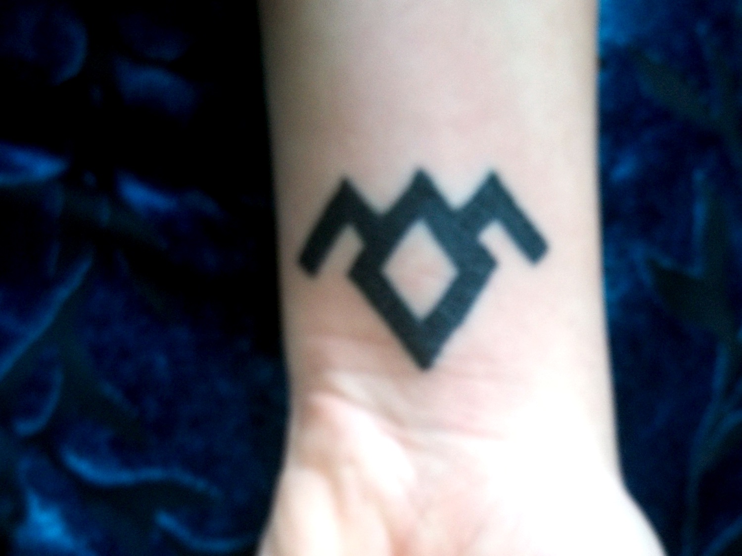 It's the symbol from the Owl Cave on Twin Peaks. It was done by Rick at Body Art Ink in Dalton, GA. He did two of the other tattoos I have, as well. He's the sweetest guy in the world, and he does good work.